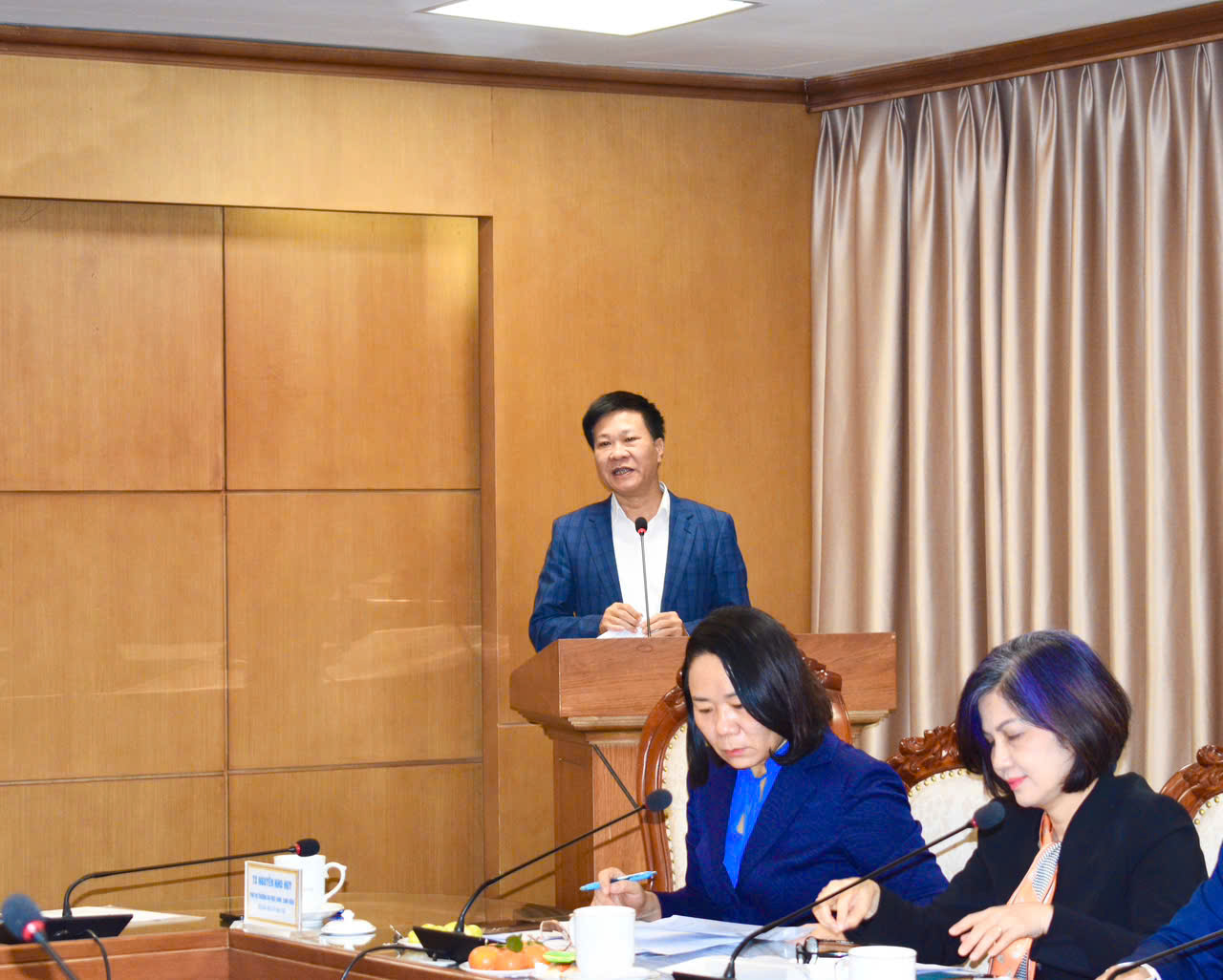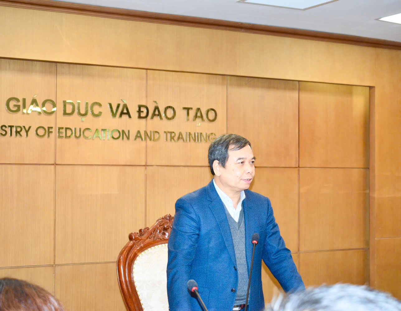 Phó Vụ trưởng Vụ Học sinh, sinh viên Nguyễn Nho Huy thông tin tại buổi làm việc