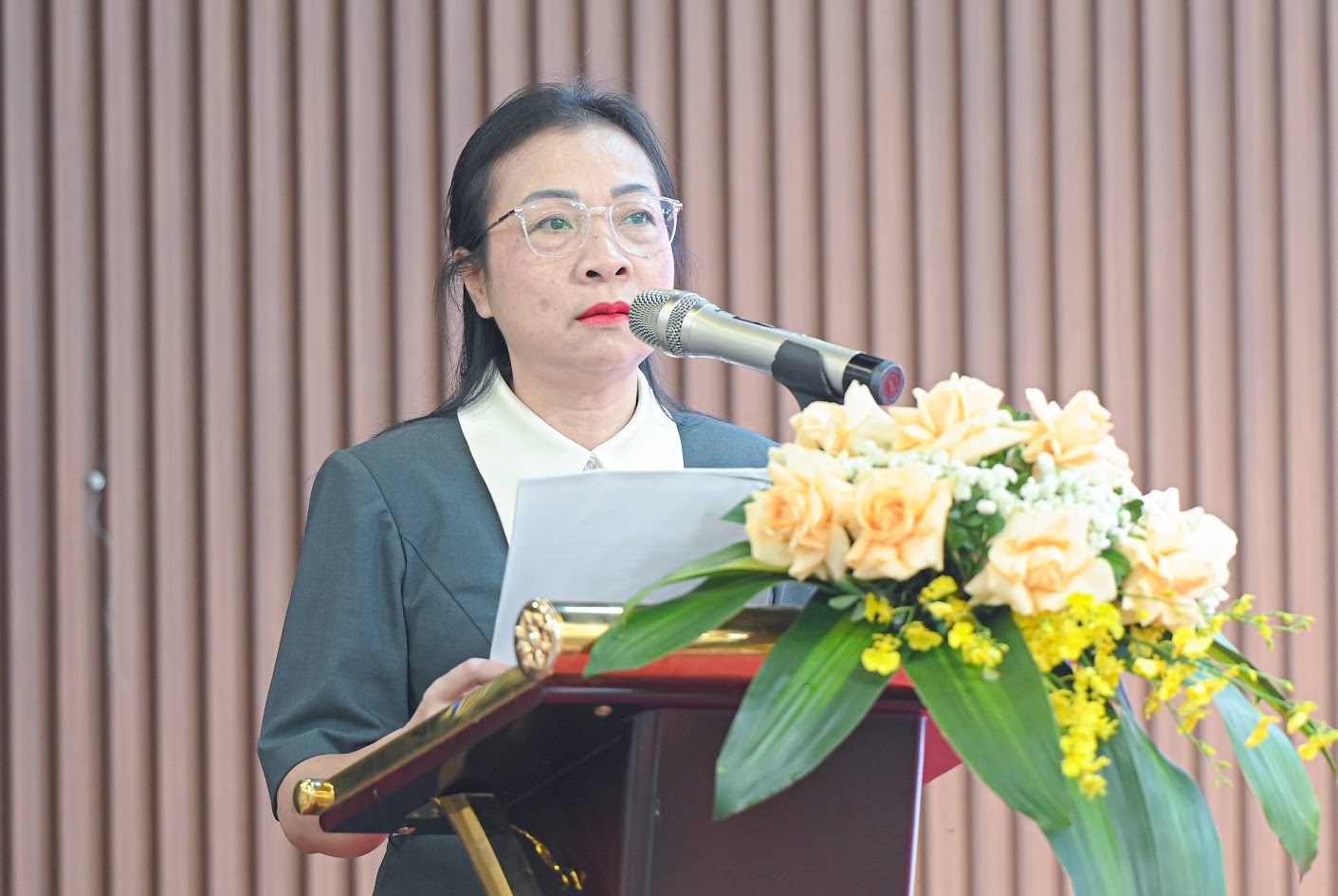 Bà Hoàng Thị Hồng Giang, đại diện Sở GDĐT Hải Phòng, tham luận tại hội nghị
