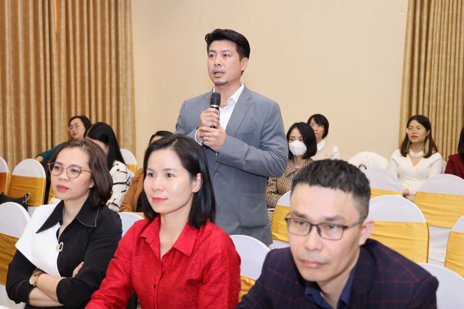 Ông Đỗ Quốc Đạt, Trưởng phòng Công tác sinh viên và Quan hệ doanh nghiệp, Trường Đại học Hà Nội, trao đổi tại hội nghị
