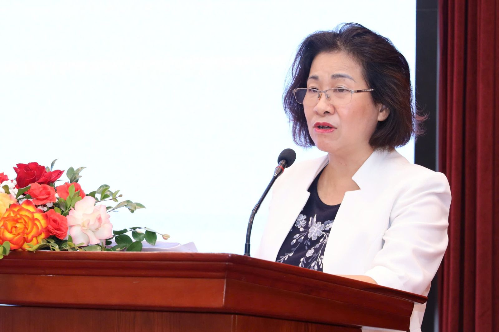 Chuyên viên Nguyễn Thị Bích Thuỷ báo cáo tại hội nghị