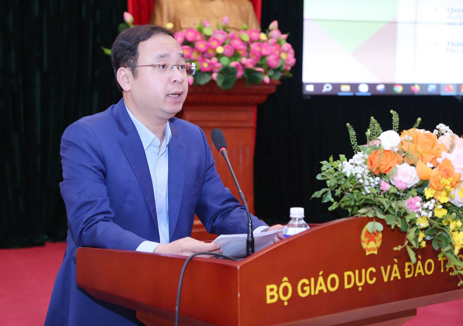 Viện trưởng Viện Khoa học Giáo dục Việt Nam Lê Anh Vinh thông tin tại hội thảo