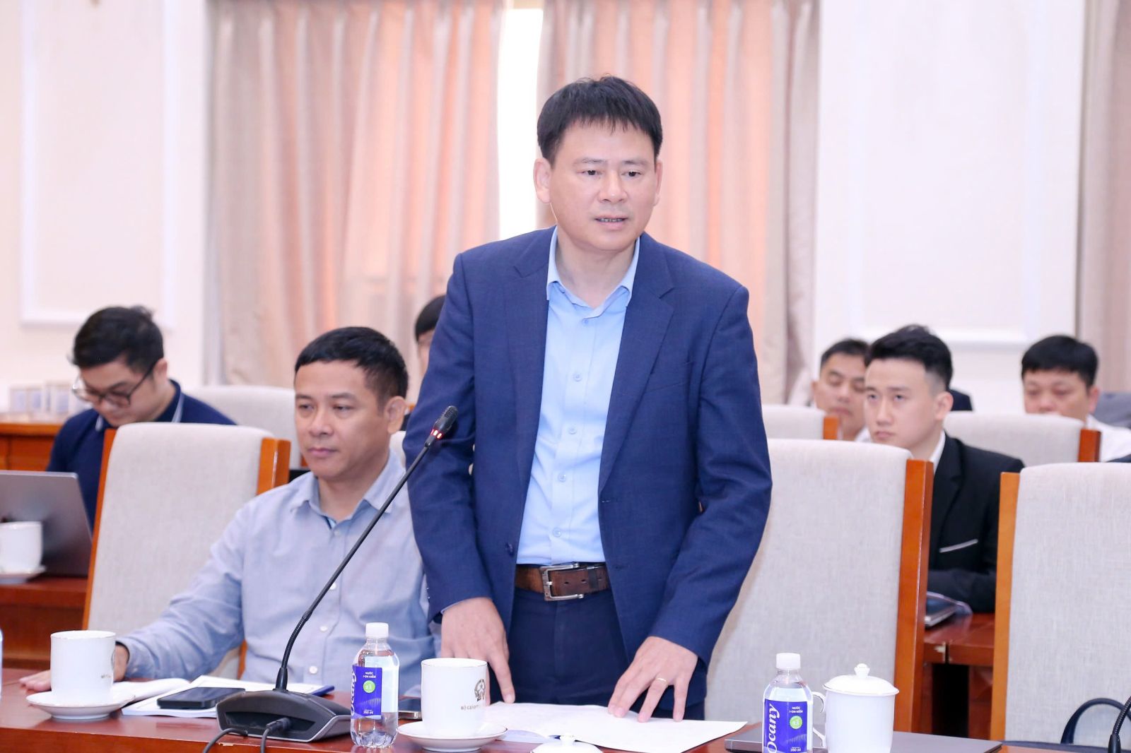 Ông Lê Huy Hoàng, Phó Vụ trưởng Vụ Giáo dục, Ban Tuyên giáo và Dân vận Trung ương trao đổi tại hội thảo