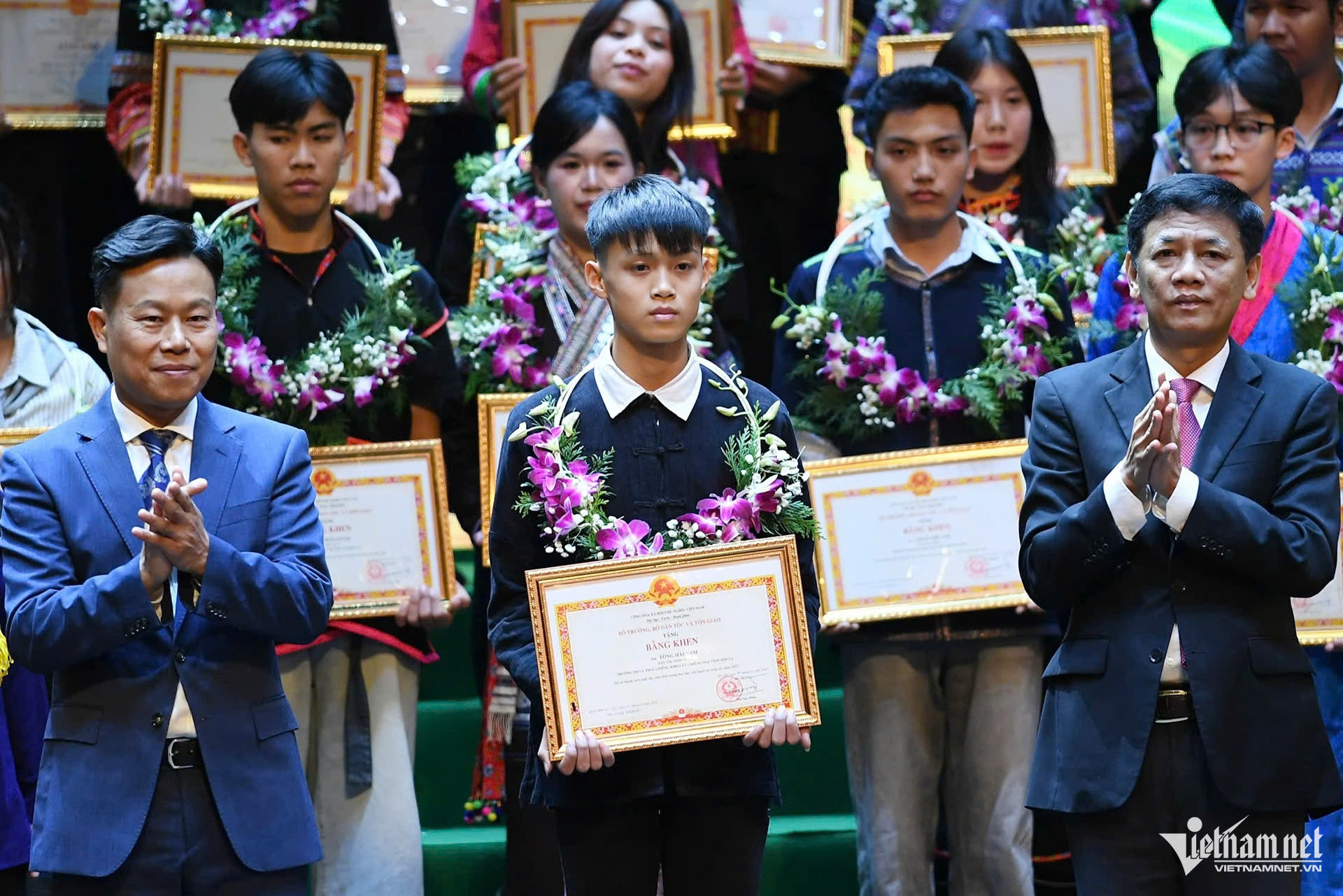 Phó Thủ tướng Mai Văn Chính, Bộ trưởng Bộ Dân tộc và Tôn giáo Đào Ngọc Dung trao tặng bằng khen cho các học sinh, sinh viên dân tộc thiểu số tiêu biểu