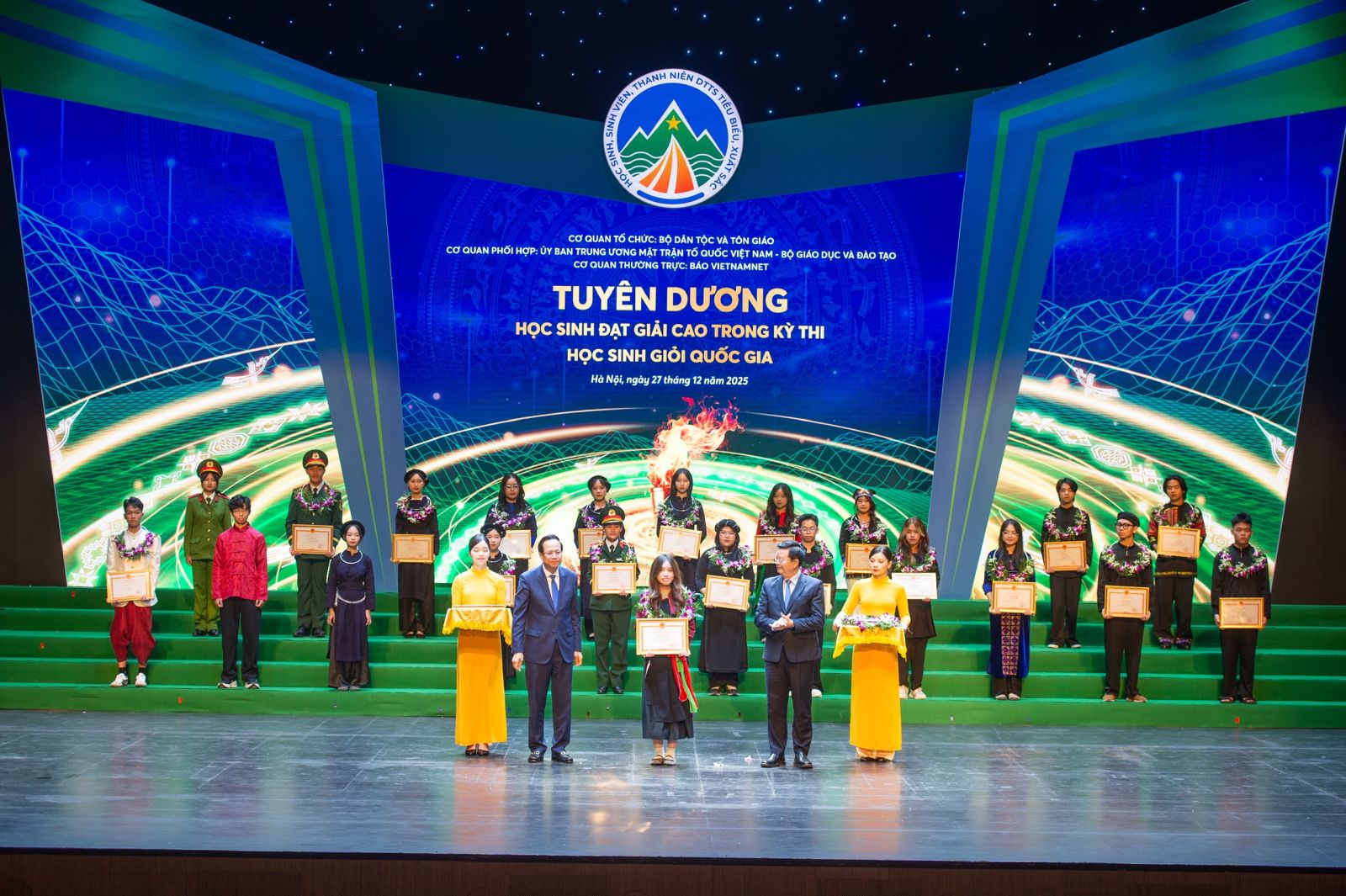 Tối ngày 27/12, tại Nhà hát Hồ Gươm (Hà Nội) đã diễn ra lễ tuyên dương học sinh, sinh viên, thanh niên dân tộc thiểu số xuất sắc, tiêu biểu năm 2025, vinh danh 150 học sinh, sinh viên, thanh niên 53 dân tộc thiểu số.