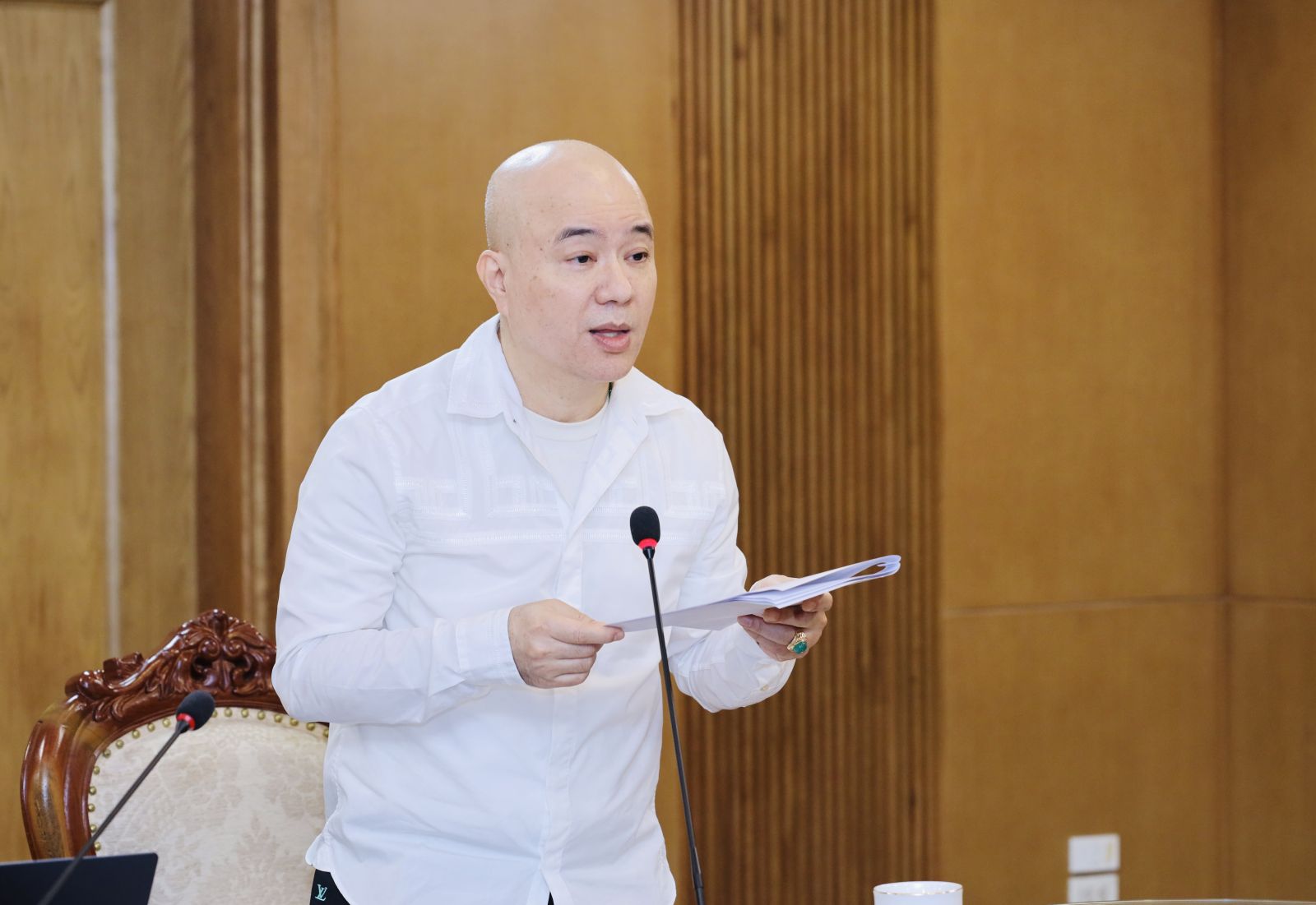 Vụ trưởng Vụ Giáo dục Phổ thông Thái Văn Tài báo cáo tại phiên họp