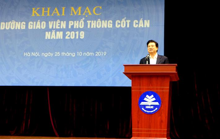 Phát biểu khai mạc, GS Nguyễn Văn Minh, Hiệu trưởng Trường Đại học Sư phạm Hà Nội cho biết, năm 2019 nhà trường được giao trọng trách bồi dưỡng cho hơn 5.000 giáo viên phổ thông cốt cán của 10 tỉnh thành phía Bắc về chương trình giáo dục phổ thông mới. Trong đợt tập huấn đầu tiên này, có 1.870 giáo viên sẽ tham gia bồi dưỡng tại 2 cơ sở của trường ở thành phố Hà Nội và tỉnh Hà Nam.