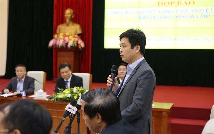 Tại họp báo, vấn đề lựa chọn sách giáo khoa mới sử dụng trong các cơ sở giáo dục phổ thông được báo chí quan tâm, đặt câu hỏi. Trả lời vấn đề này, Vụ phó Vụ Giáo dục Trung học - PGS.TS Nguyễn Xuân Thành cho biết, theo Luật Giáo dục 2019 đã quy định: “Ủy ban nhân dân cấp tỉnh quyết định việc lựa chọn sách giáo khoa sử dụng ổn định trong cơ sở giáo dục phổ thông trên địa bàn theo quy định của Bộ trưởng Bộ Giáo dục và Đào tạo".
