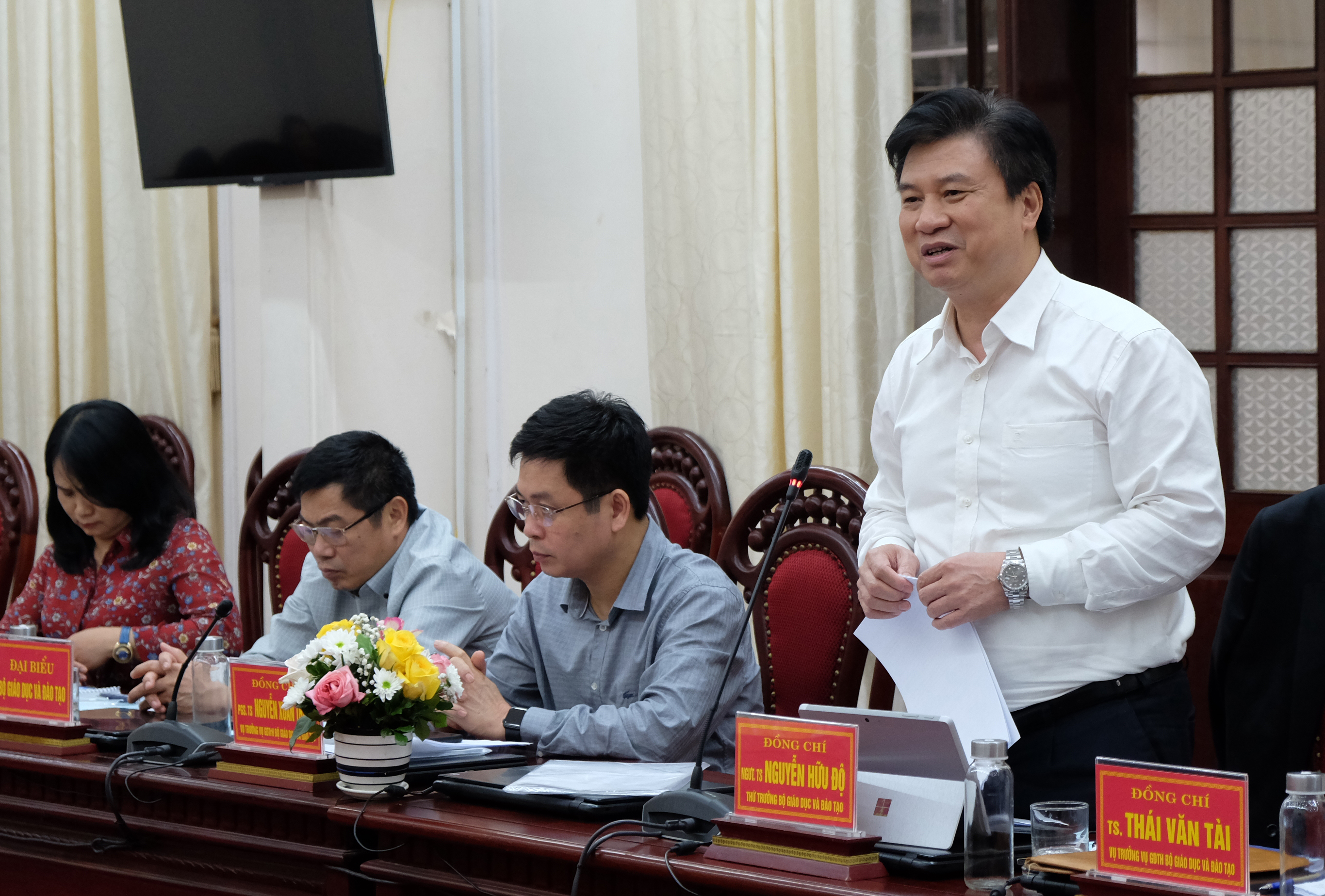 Thứ trưởng Nguyễn Hữu Độ phát biểu tại buổi làm việc với lãnh đạo tỉnh và ngành Giáo dục tỉnh Ninh Bình