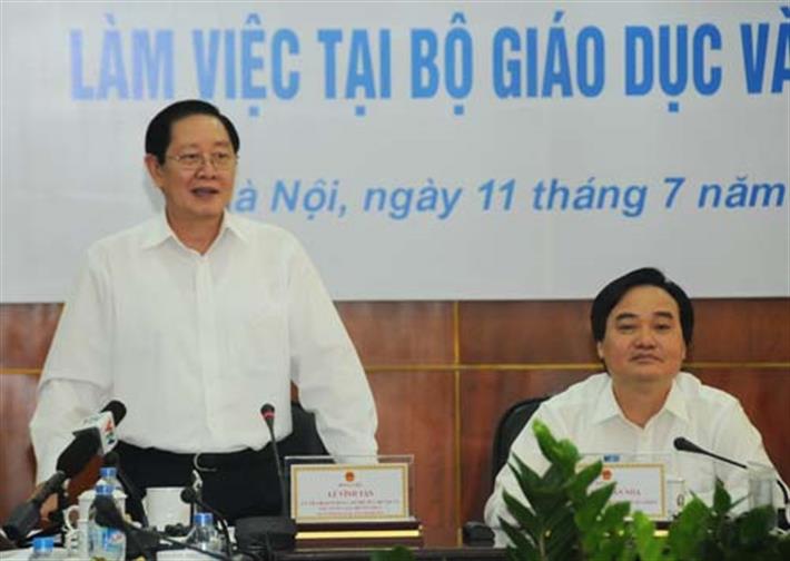 Phát biểu kết luận buổi làm việc, Bộ trưởng Bộ Nội vụ Lê Vĩnh Tân, Phó trưởng Ban thường trực Ban chỉ đạo CCHC của Chính phủ đánh giá cao kết quả công tác CCHC của Bộ GD&ĐT trong thời gian qua, đồng thời đề nghị Bộ chỉ đạo cơ quan thường trực CCHC tổ chức đánh giá, rút kinh nghiệm về chỉ số xếp hạng để cải thiện hoạt động CCHC, nâng điểm số CCHC của Bộ.