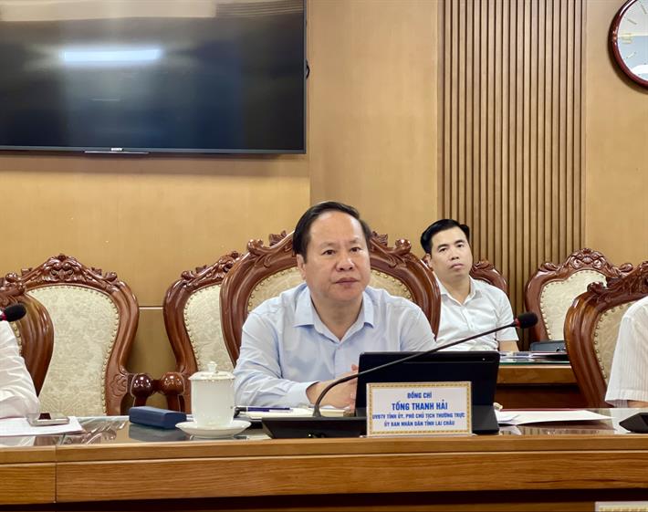 Phó Chủ tịch Thường trực UBND tỉnh Lai Châu Tống Thanh Hải phát biểu tại buổi làm việc