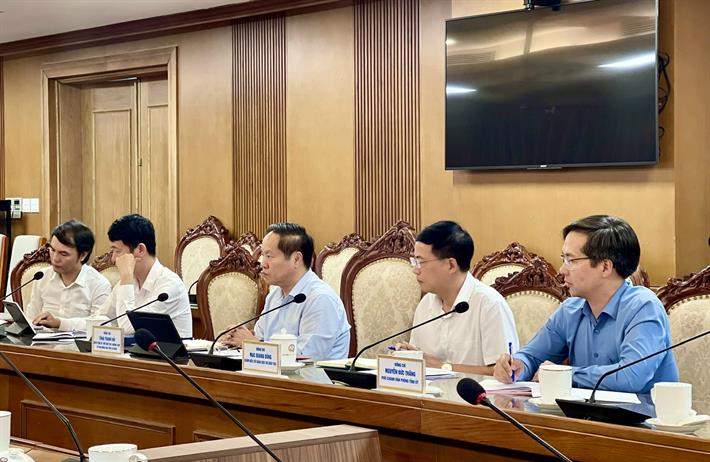 Thứ trưởng Thường trực Phạm Ngọc Thưởng cùng đại diện các Vụ, Cục tham dự buổi làm việc.