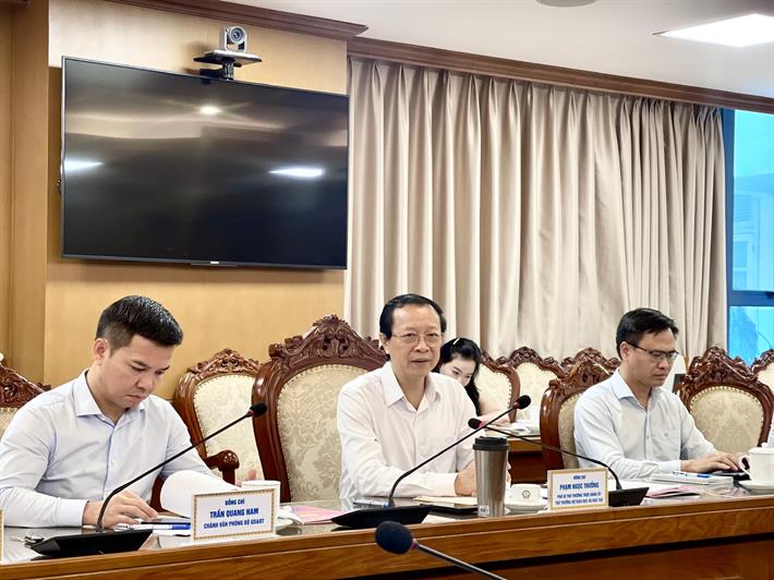 Thứ trưởng Thường trực Phạm Ngọc Thưởng phát biểu tại buổi làm việc
