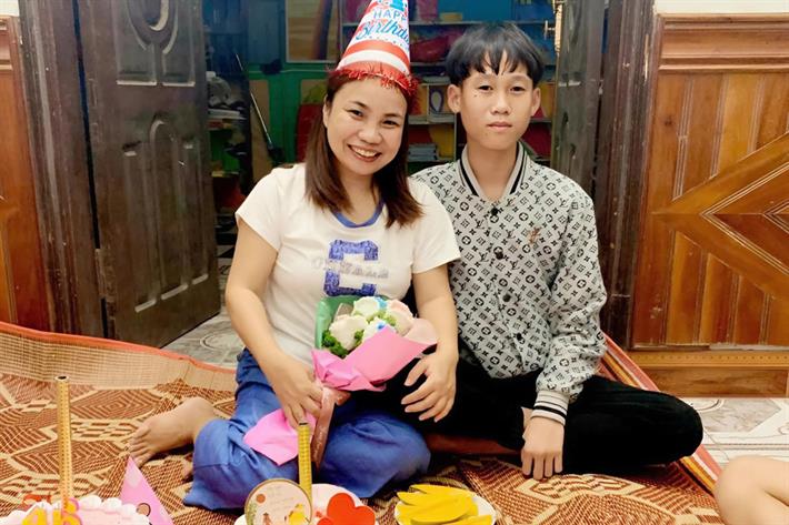 Em Hoàng Danh Hồng Lĩnh bên mẹ nuôi Hoàng Thị Thái Hòa