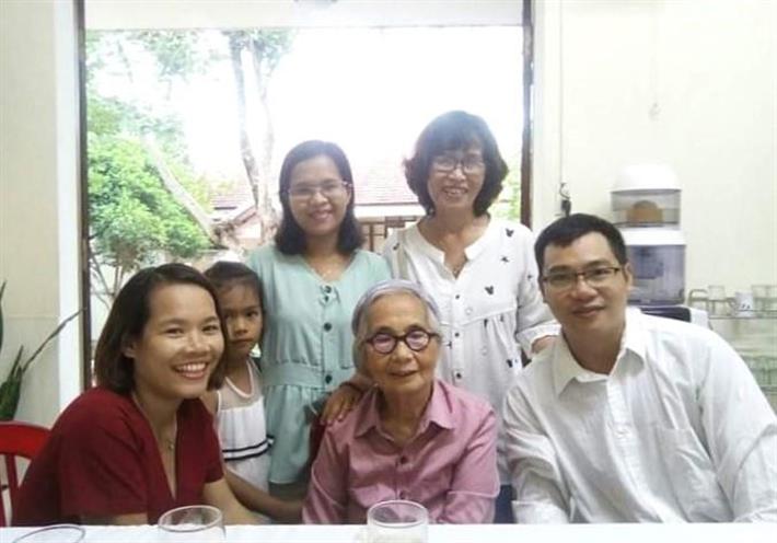 Cô Hiền cùng người cô đỡ đầu (áo hồng) và bảo mẫu (đứng hàng sau, áo trắng, đeo kính) đã chăm sóc, nuôi dưỡng cô khi ở Trung tâm bảo trợ trẻ em
