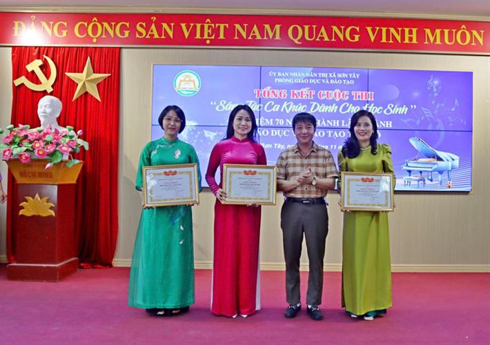 Cô Phan Thị Thúy An (thứ 2 từ trái qua) cũng đạt nhiều thành tích ở các phong trào thi đua cấp thị xã và được lãnh đạo khen thưởng