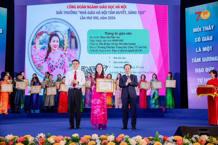Là một trong các cá nhân được Sở Giáo dục và Đào tạo (GDĐT) Hà Nội trao tặng giải thưởng "Nhà giáo Hà Nội tâm huyết, sáng tạo" lần thứ 8 năm 2024 - cô Phan Thị Thúy An, Phó Hiệu trưởng Trường Tiểu học Trung Sơn Trầm (Thị xã Sơn Tây) có hơn 20 năm công tác trong ngành. Trước khi được bổ nhiệm quản lý vào năm 2022, cô đã gắn bó và giảng dạy tại Trường Tiểu học Lê Lợi 17 năm.