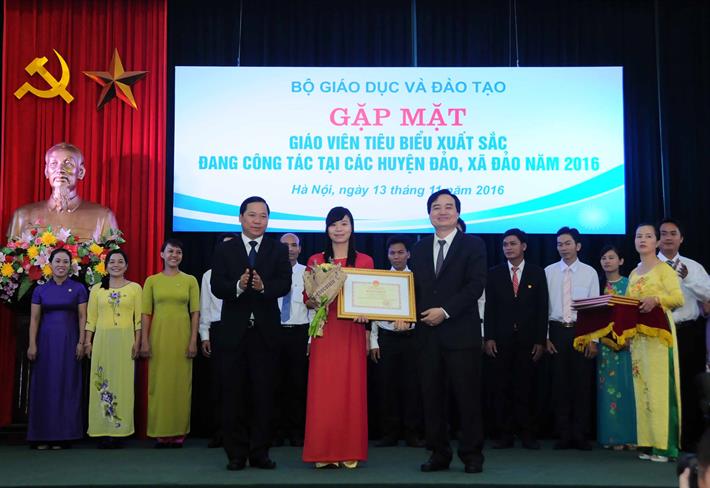 Ghi nhận những đóng góp của các thầy cô giáo, Bộ trưởng Phùng Xuân Nhạ đã trao tặng bằng khen cho 42 giáo viên tiêu biểu xuất sắc công tác tại các huyện đảo, xã đảo.