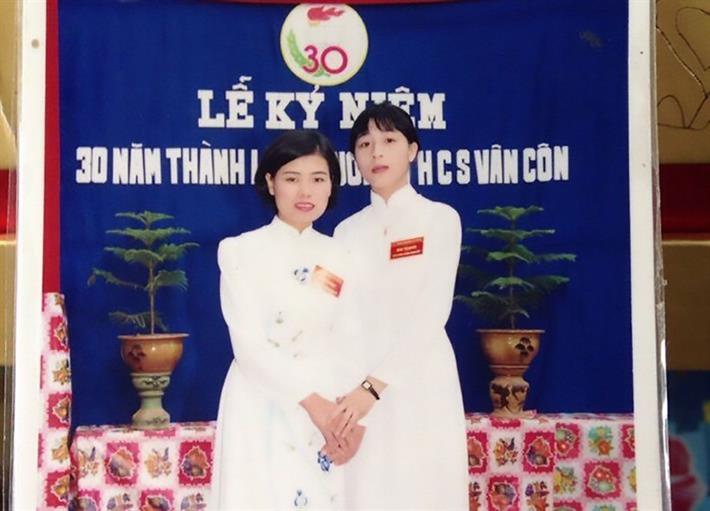 Cô Nguyễn Thị Huyền (hình bên phải) thời điểm công tác tại trường THCS Vân Côn