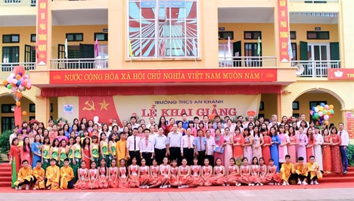 Tập thể cán bộ, giáo viên Trường THCS An Khánh chụp ảnh kỉ niệm nhân dịp khai giảng năm học 2020-2021
