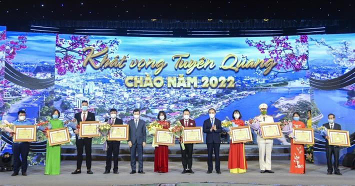 Cô Lê Thị Thu Hiền (thứ 4 từ phải sang) trong Lễ vinh danh công dân tiêu biểu tỉnh Tuyên Quang
