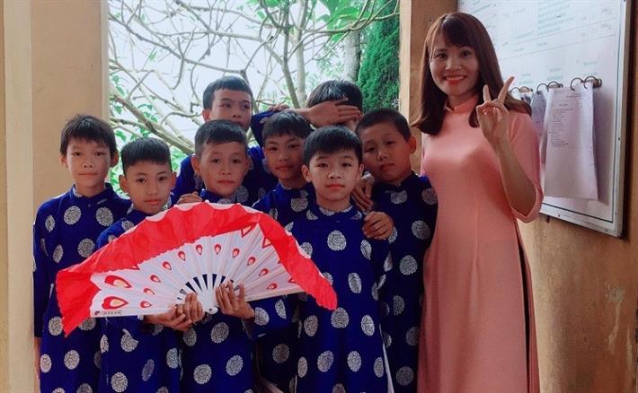 Cô Hán Thị Ngát và học sinh Trường THCS Đan Thượng, Hạ Hòa, Phú Thọ