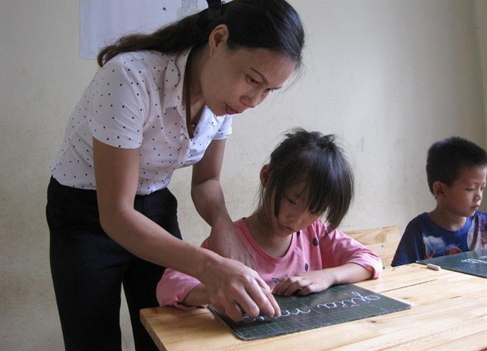 Cô Ma Thị Vân rèn chữ viết cho học sinh