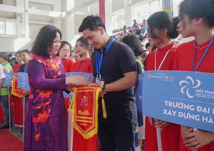 Tại lễ khai mạc, Thứ trưởng Bộ GDĐT đã trao cờ cho đơn vị đăng cai là Trường Đại học Vinh và tặng cờ lưu niệm cho các đơn vị tham gia hội thao.