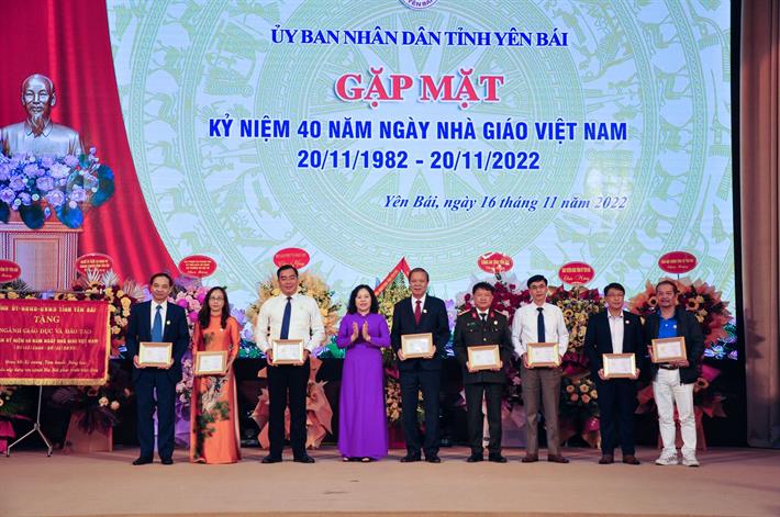 Nhân dịp này, thay mặt lãnh đạo Bộ GDĐT, Thứ trưởng Ngô Thị Minh đã trao tặng “Kỷ niệm chương Vì sự nghiệp giáo dục” cho 14 cá nhân có thành tích xuất sắc đóng góp cho sự nghiệp giáo dục đào tạo tỉnh Yên Bái. UBND tỉnh Yên Bái tặng Bằng khen cho 15 tập thể và 20 cá nhân đã có thành tích xuất sắc trong phong trào thi đua chào mừng kỷ niệm 40 năm Ngày Nhà giáo Việt Nam.