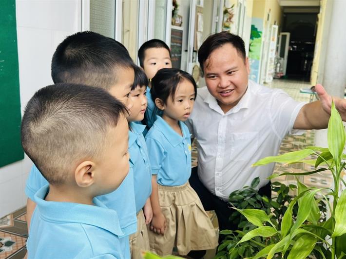 Cô Đặng Thị Nguyệt, Hiệu trưởng Trường Mầm non Tân Viên chia sẻ, giáo viên mầm non có nhiều khó khăn, vất vả bởi nghề đặc thù chăm sóc, nuôi dưỡng trẻ. Nhiều cô mới ra trường chưa lập gia đình cũng không tránh khỏi những bỡ ngỡ trong quá trình giáo dục trẻ. Vậy mà, gần 10 năm trong nghề lại là những trải nghiệm tuyệt vời để thầy Tuyến cống hiến sức trẻ và thể hiện tài năng của một nam giáo viên với việc chăm sóc trẻ mầm non.