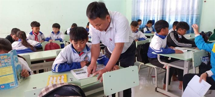 Thầy Tùng tâm sự: “Những năm đó, học sinh trong buôn làng đi học rất ít, số lượng chỉ đếm trên đầu ngón tay. Nhiều ngày liền, tôi phải vào rừng, lên tận rẫy vận động, thuyết phục phụ huynh cho con em đi học.