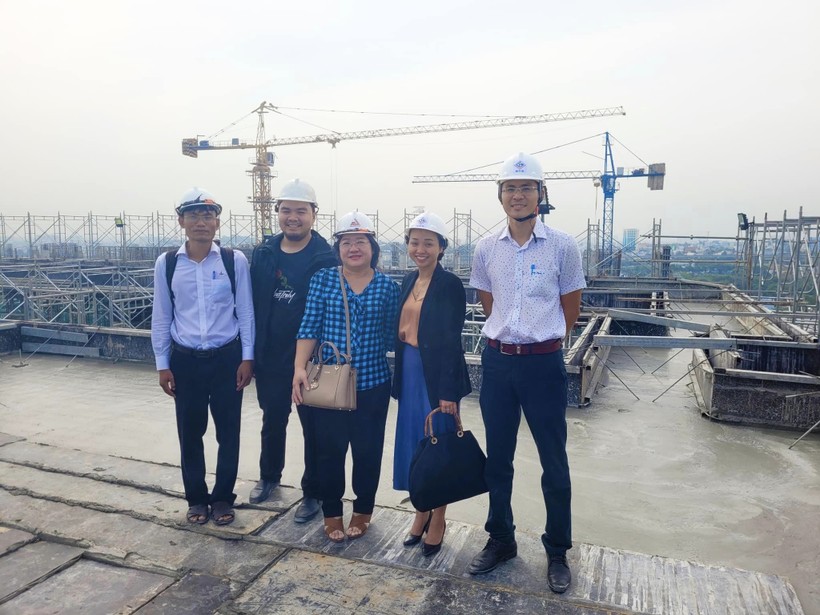 Lưu Ngọc Quỳnh Khôi (thứ hai từ trái sang) làm việc tại một công trình xây dựng ở TPHCM