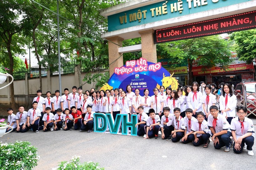 Cô giáo Nguyễn Diễm My và các bạn học sinh trong ngày khai trường