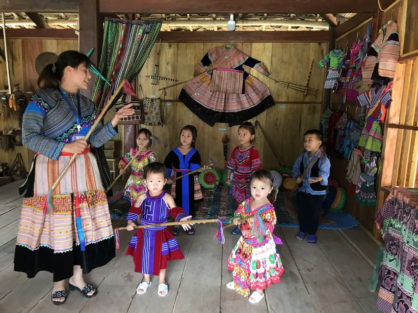Vô cùng đặc sắc và sinh động, từng hiện vật, kết hợp cùng lời ca, điệu múa, cô giáo Phàng Thị Dy, đã truyền tải tình yêu quê hương, dân tộc với học sinh của mình rất hiệu quả. "Quan tâm giáo dục truyền thống văn hóa, lịch sử địa phương, thực hiện giảng dạy nội dung giáo dục địa phương trong chương trình hằng năm. Tôi đã tổ chức cho học sinh được tham gia các hoạt động trải nghiệm tại nhà sàn như: giã bánh dày, múa gậy sinh tiền, thổi khèn, thổi sáo Mông…..vào các dịp Lễ hội Tết rừng Nà Hẩu, Tết nguyên đán, khởi động mùa du lịch, các ngày hội ngày hội, ngày lễ của địa phương và nhà trường". - cô Dy chia sẻ.