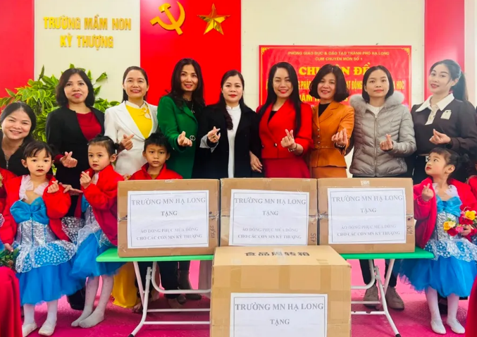 Năm 2023, Trường Mầm non Hạ Long nhận đỡ đầu cho 2 cháu đến năm 18 tuổi, quyên góp may áo đồng phục cho học sinh vùng cao và ủng hộ xây nhà cho người nghèo.