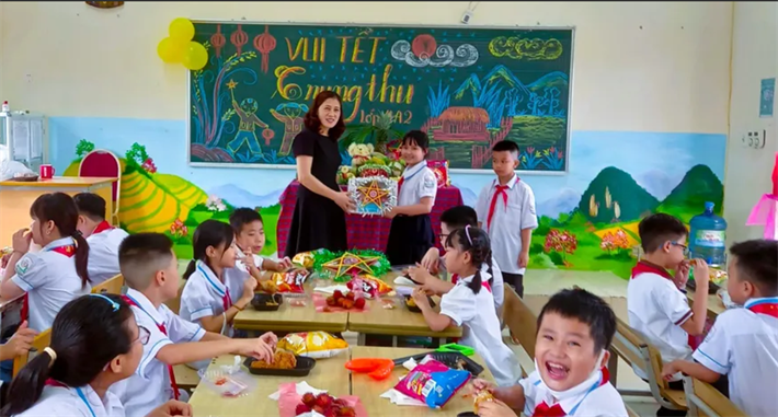 Cô Lê Thị Nga thăm, động viên học sinh trong dịp Tết Trung thu
