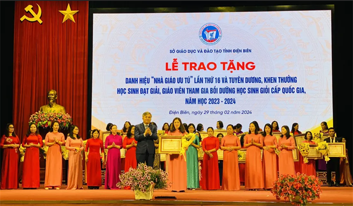 Ngành GDĐT tỉnh Điện Biên vừa tổ chức Lễ trao tặng danh hiệu Nhà giáo ưu tú (NGƯT) cho 43 thầy cô. Đây là lần đầu tiên tỉnh Điện Biên trao tặng nhiều danh hiệu NGƯT nhất từ trước đến nay. Trong số những thầy cô được vinh dự trao tặng danh hiệu NGƯT lần này có cô Lê Thị Nga, Hiệu trưởng Trường Tiểu học Hà Nội - Điện Biên Phủ.