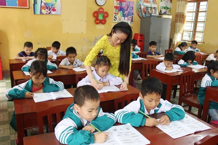 Cô giáo Bùi Thị Nhiên với các học sinh thân yêu của mình