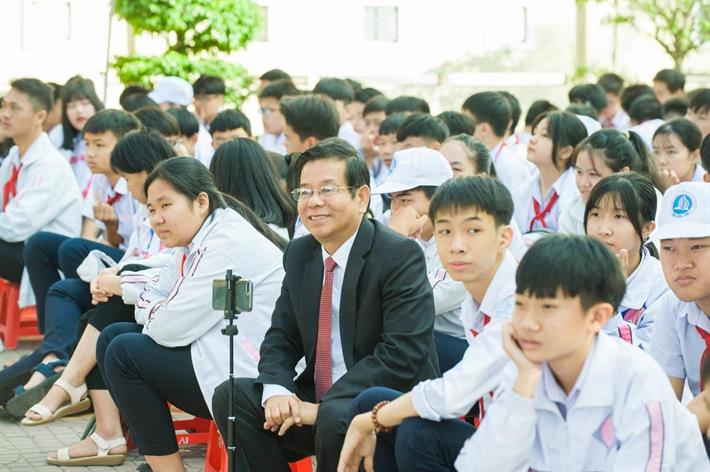 Thầy Lâm trong buổi giao lưu với HS lớp 9