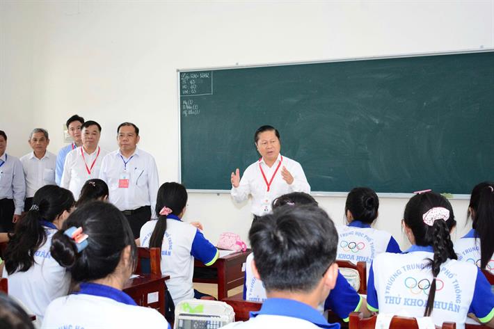 Thứ trưởng Bộ GDĐT Lê Tấn Dũng kiểm tra thực tế tại điểm thi tỉnh Tiền Giang