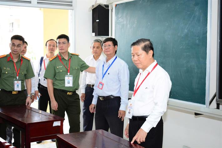 Tại buổi kiểm tra, Thứ trưởng Lê Tấn Dũng đã trực tiếp khảo sát cơ sở vật chất, phòng thi, khu vực làm việc của cán bộ coi thi, công tác bảo đảm an ninh, an toàn và phòng, chống gian lận trong thi cử.