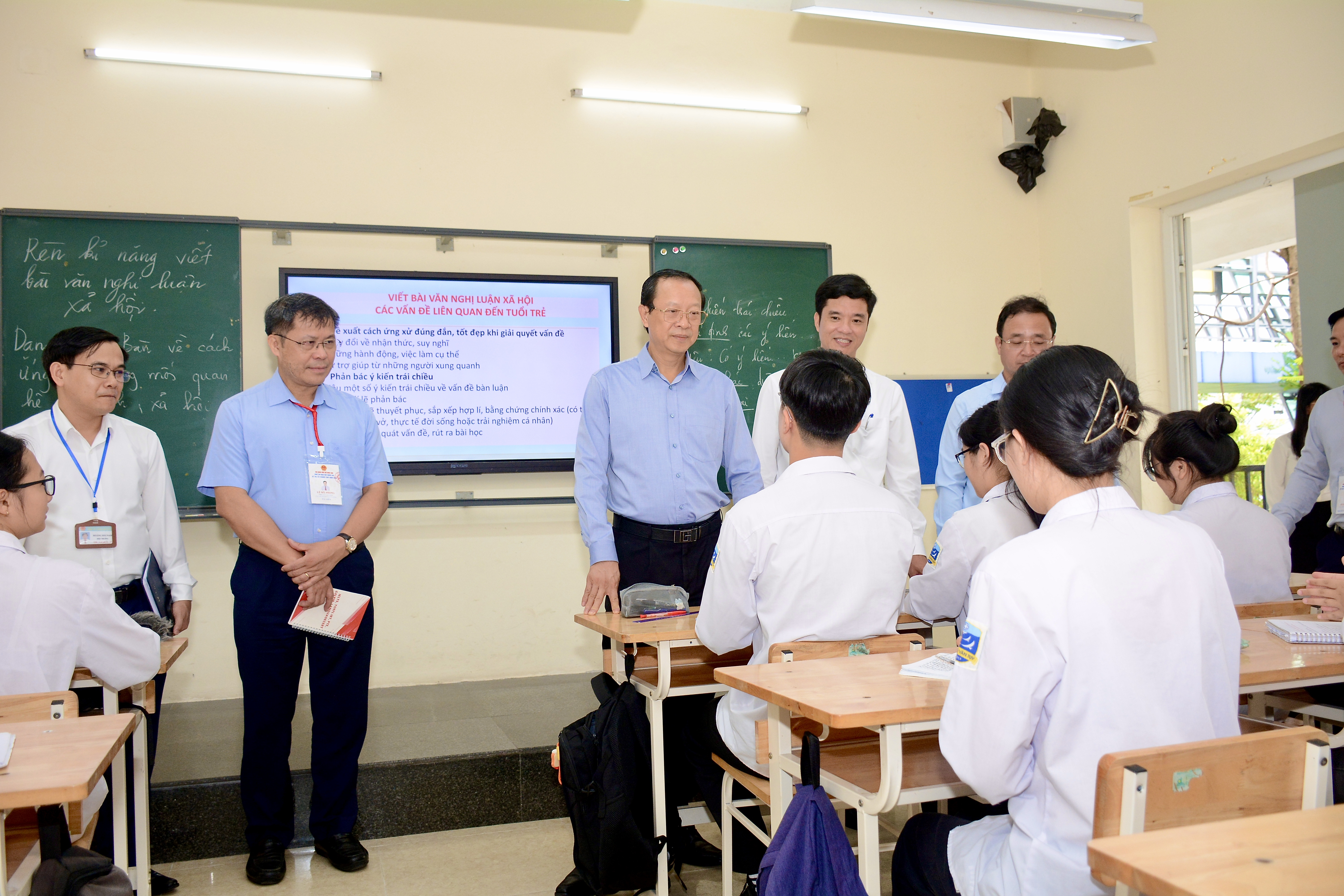 Thứ trưởng mong các em tận dụng thời gian từ nay cho tới kỳ thi, tiếp tục phát huy cao nhất năng lực của mình, dù có lo lắng nhưng không căng thẳng quá mức. Phát huy kiến thức, kĩ năng các em đã học thường xuyên; những phẩm chất, kinh nghiệm đã được thầy cô chia sẻ, giảng dạy.