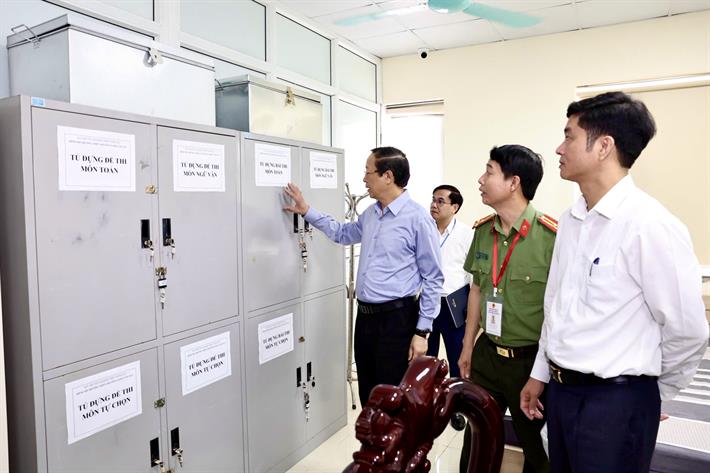 Thứ trưởng Thường trực Phạm Ngọc Thưởng kiểm tra tủ chứa đề thi