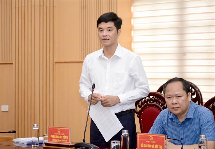 Giám đốc Sở GDĐT tỉnh Ninh Bình Phan Thành Công – Phó Ban Chỉ đạo Kỳ thi tỉnh báo cáo tại buổi làm việc