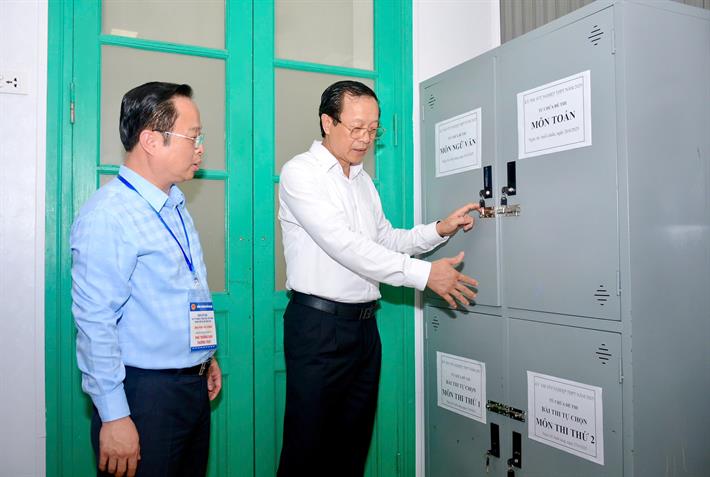 Thứ trưởng Thường trực Phạm Ngọc Thưởng kiểm tra tủ chứa đề thi