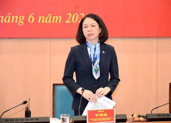 Phó Chủ tịch UBND thành phố Hà Nội Vũ Thu Hà – Trưởng Ban Chỉ đạo Kỳ thi tốt nghiệp THPT thành phố trao đổi tại buổi làm việc
