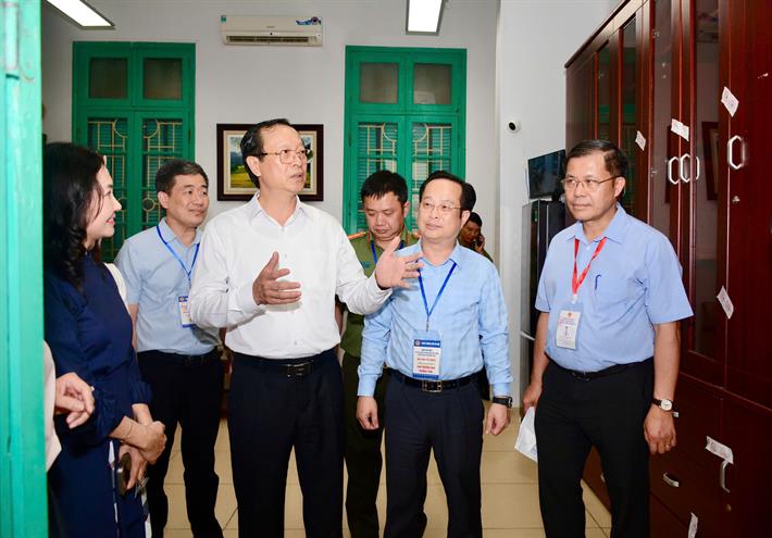 Qua quá trình kiểm tra, Thứ trưởng Thường trực Bộ GDĐT Phạm Ngọc Thưởng ghi nhận công tác chuẩn bị nghiêm túc và chu đáo của thành phố Hà Nội với địa điểm in sao biệt lập, kiên cố, các lực lượng túc trực 24/24 giờ, sẵn sàng vận hành.