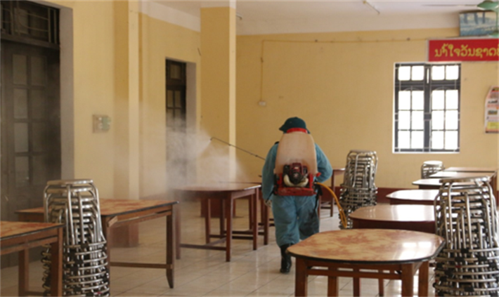Phun thuốc khử khuẩn nhà ăn của lưu học sinh