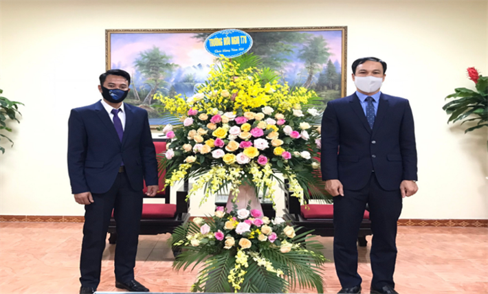 TS. Lê Phú Thắng – Hiệu trưởng trường Hữu Nghị T78 chúc tết Bunpimay các lưu học sinh Lào