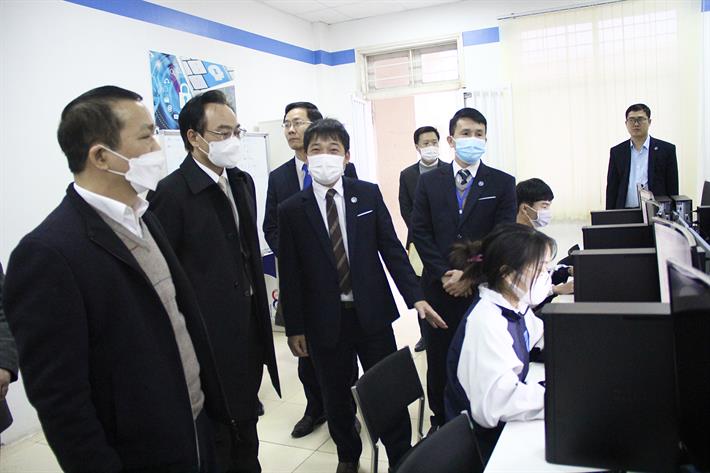 Thứ trưởng Hoàng Minh Sơn và đoàn công tác thăm phòng thực hành của Trường Đại học Công nghệ Thông tin và Truyền thông.