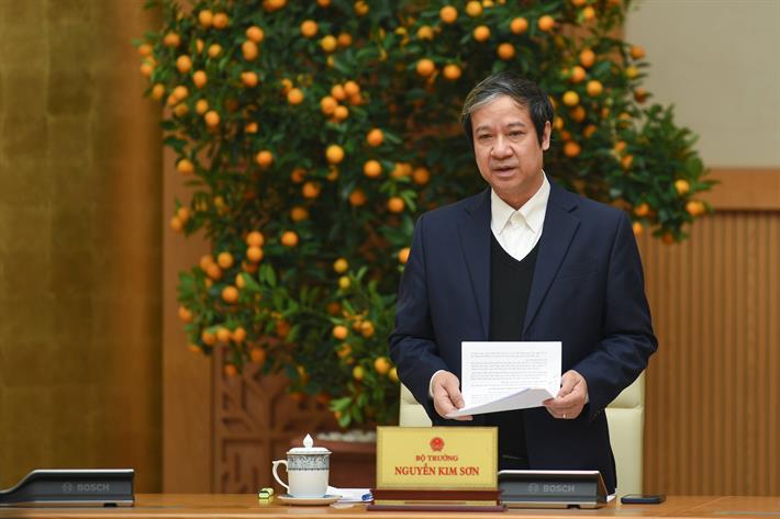 Bộ trưởng Bộ GDĐT Nguyễn Kim Sơn phát biểu tại cuộc họp